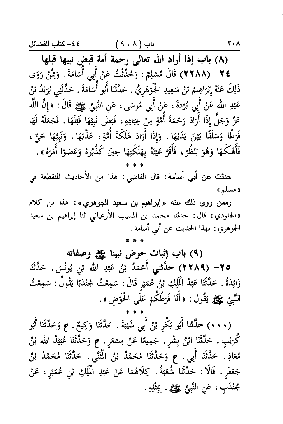 [2288] حدثت عَن أبي أُسَامَة قَالَ القَاضِي هَذَا من الْأَحَادِيث المنقطعة فِي مُسلم وَمِمَّنْ روى ذَلِك عَنهُ إِبْرَاهِيم بن سعيد الْجَوْهَرِي هَذَا من كَلَام الجلودي قَالَ حَدثنَا مُحَمَّد بن الْمسيب الأرعياني ثَنَا إِبْرَاهِيم بن سعيد الْجَوْهَرِي بِهَذَا الحَدِيث عَن أبي أُسَامَة