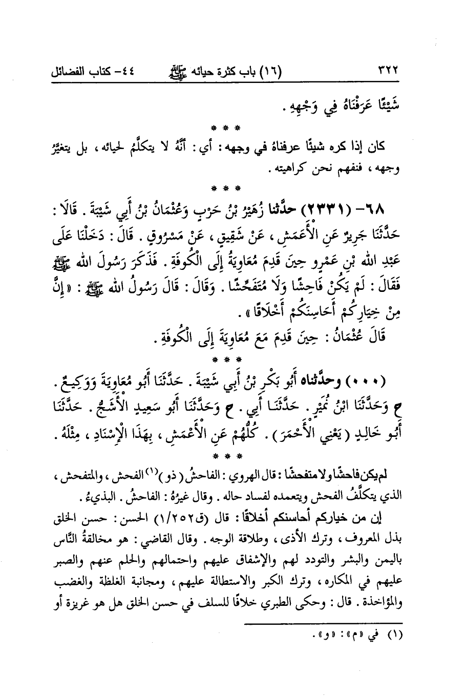 [2320] كَانَ إِذا كره شَيْئا عَرفْنَاهُ فِي وَجهه أَي أَنه لَا يتَكَلَّم لحيائه بل يتَغَيَّر وَجهه فنفهم نَحن كراهيته