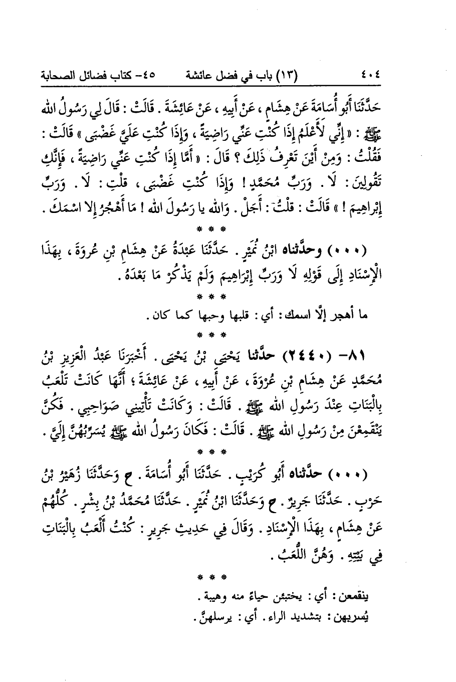 [2439] مَا أَهجر إِلَّا اسْمك أَي قَلبهَا وحبها كَمَا كَانَ