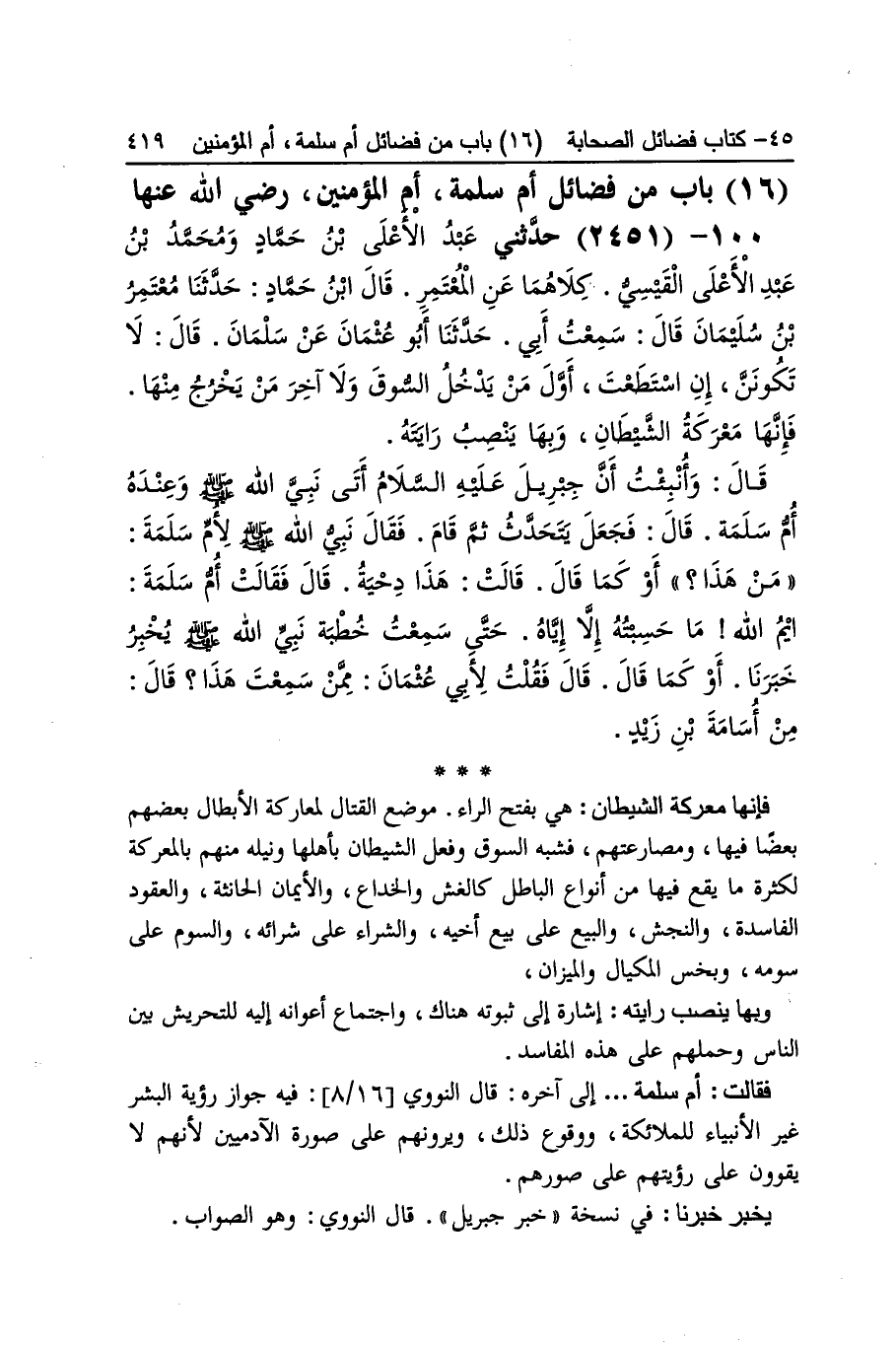 [2449] ابْنَتي بضعَة مني بِفَتْح الْبَاء لَا غير وَهِي الْقطعَة من اللَّحْم يريبني بِفَتْح الْيَاء ثمَّ ذكر صهرا لَهُ من بني عبد شمس هُوَ أَبُو الْعَاصِ بن الرّبيع زوج زَيْنَب بنت رَسُول الله صلى الله عَلَيْهِ وَسلم لَا أرى الْأَجَل بِضَم الْهمزَة أَي أَظن نعم السّلف أَي الْمُتَقَدّم أما ترضي كذت فِي الْأُصُول بِحَذْف النُّون وَهُوَ لُغَة