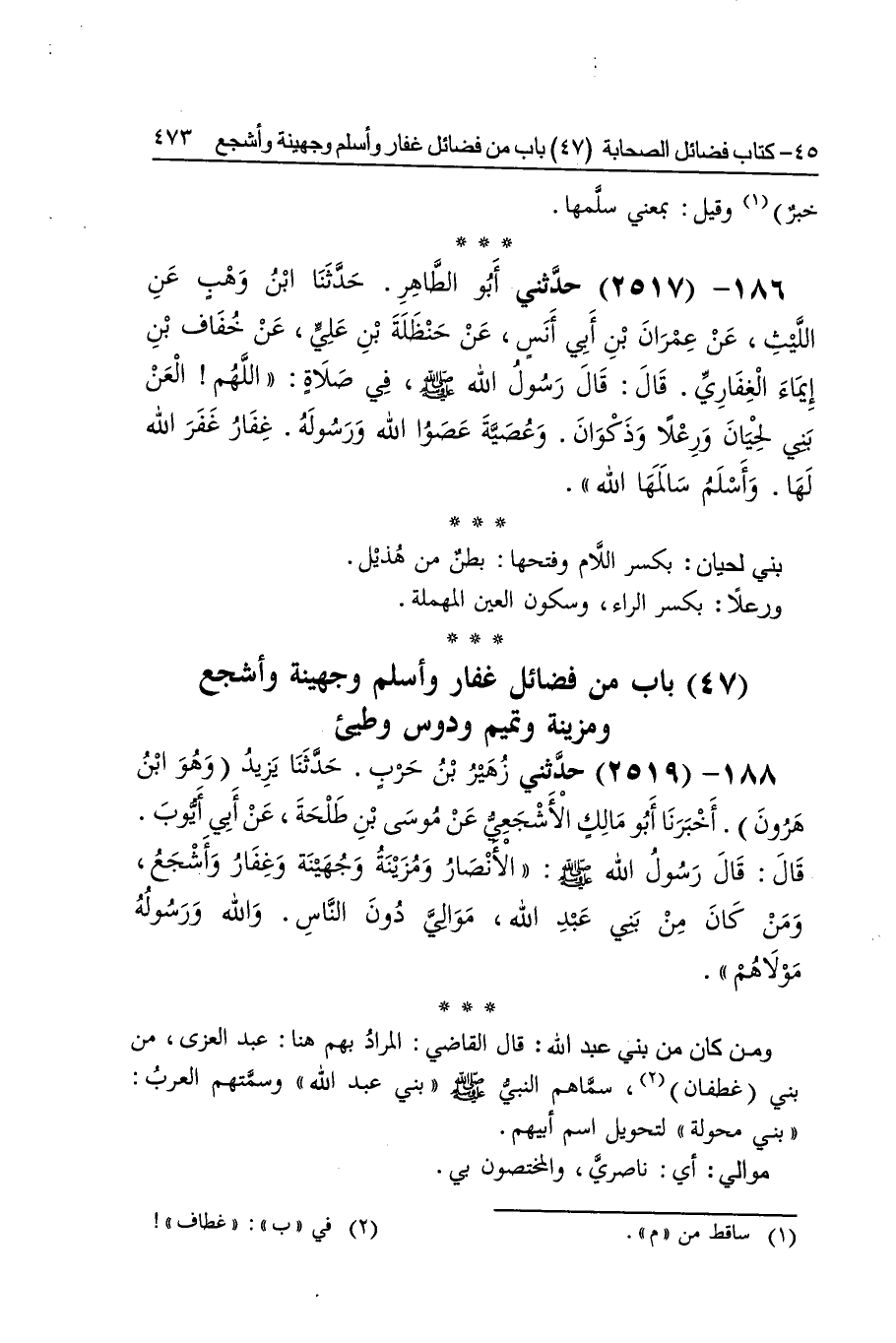 [2517] بني لحيان بِكَسْر اللَّام وَفتحهَا بطن من هُذَيْل وَرِعْلًا بِكَسْر الرَّاء وَسُكُون الْعين الْمُهْملَة