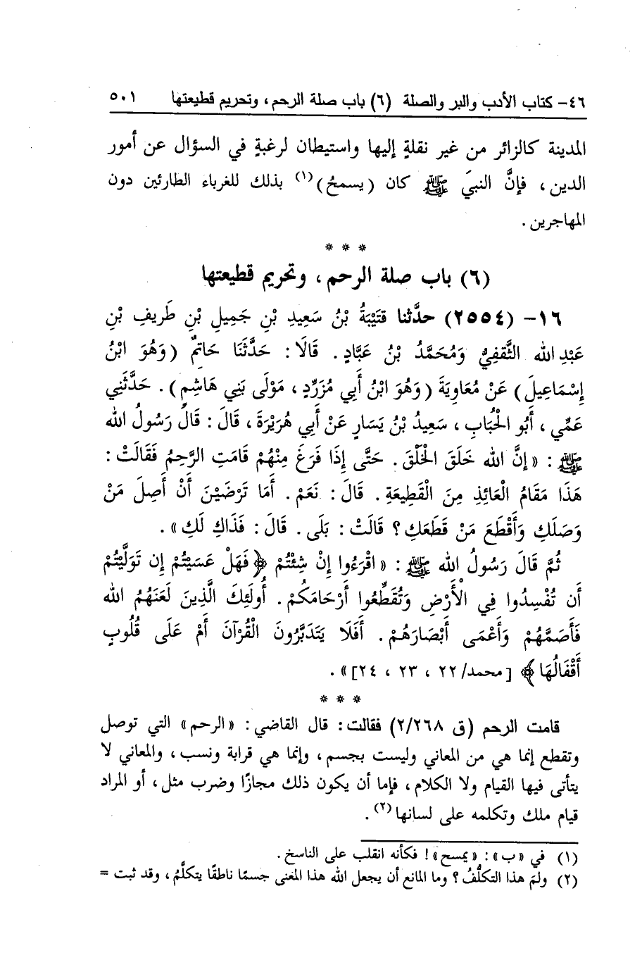 [2553] عَن النواس بن سمْعَان الْأنْصَارِيّ قَالَ أَبُو عَليّ الجياني وَغَيره هَذَا وهم وَصَوَابه الْكلابِي الْبر حسن الْخلق أَي يُطلق على مَا يُطلق عَلَيْهِ من الصِّلَة والصدق والمبرة واللطف وَحسن الصُّحْبَة وَالْعشرَة وَالطَّاعَة فَإِن الْبر يُطلق على كل مِمَّا ذكر وَهِي مجامع حسن الْخلق حاك أَي تردد وَلم ينشرح لَهُ الصَّدْر وَحصل فِي الْقلب الشَّك مِنْهُ مَا يَمْنعنِي من الْهِجْرَة إِلَّا الْمَسْأَلَة إِلَى آخِره مَعْنَاهُ أَنه أَقَامَ فِي الْمَدِينَة كالزائر من غير نقلة إِلَيْهَا واستيطان لرغبة فِي السُّؤَال عَن أُمُور الدّين فَإِن النَّبِي صلى الله عَلَيْهِ وَسلم كَانَ يسمح بذلك للغرباء الطارئين دون الْمُهَاجِرين