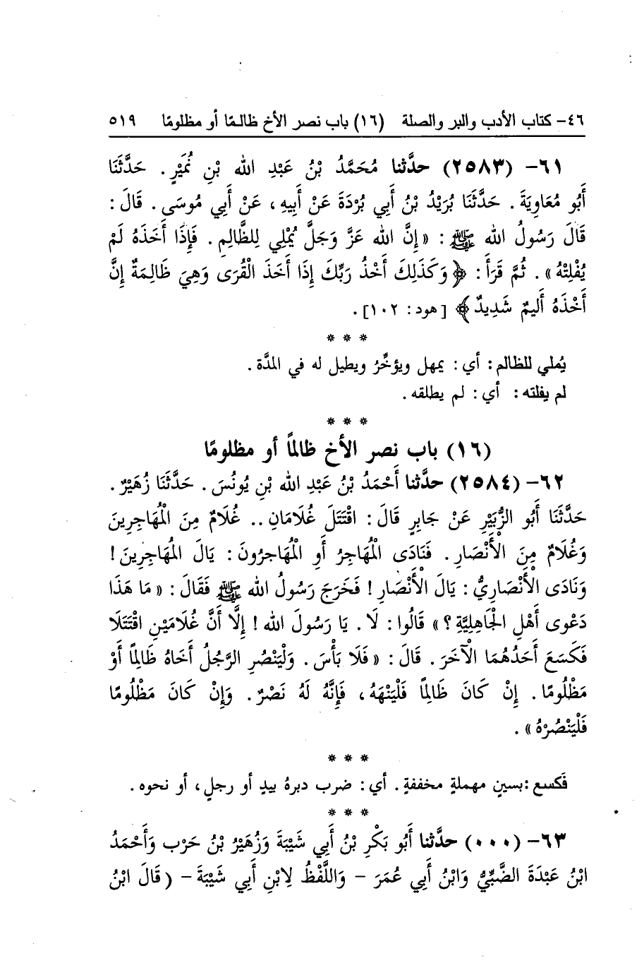 [2583] يملي للظالم أَي يُمْهل وَيُؤَخر ويطيل لَهُ فِي الْمدَّة لم يفلته أَي لم يُطلقهُ