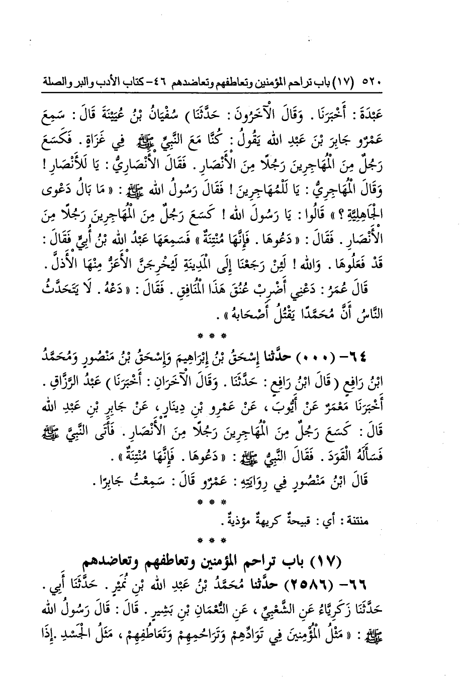 [2584] فَكَسَعَ بسين مُهْملَة مُخَفّفَة أَي ضرب دبره بيد أَو رجل أَو نَحوه مُنْتِنَة أَي قبيحة كريهة مؤذية