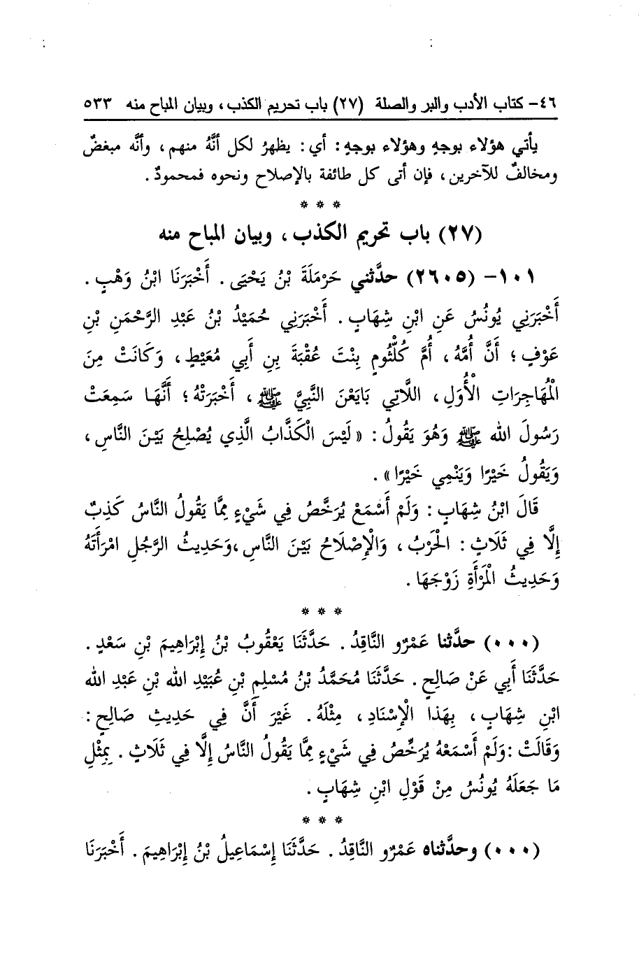 [2526] يَأْتِي هَؤُلَاءِ بِوَجْه وَهَؤُلَاء بِوَجْه أَي يظْهر لكل أَنه مِنْهُم وَأَنه مبغض ومخالف للآخرين فَإِن أَتَى كل طَائِفَة بالإصلاح وَنَحْوه فمحمود