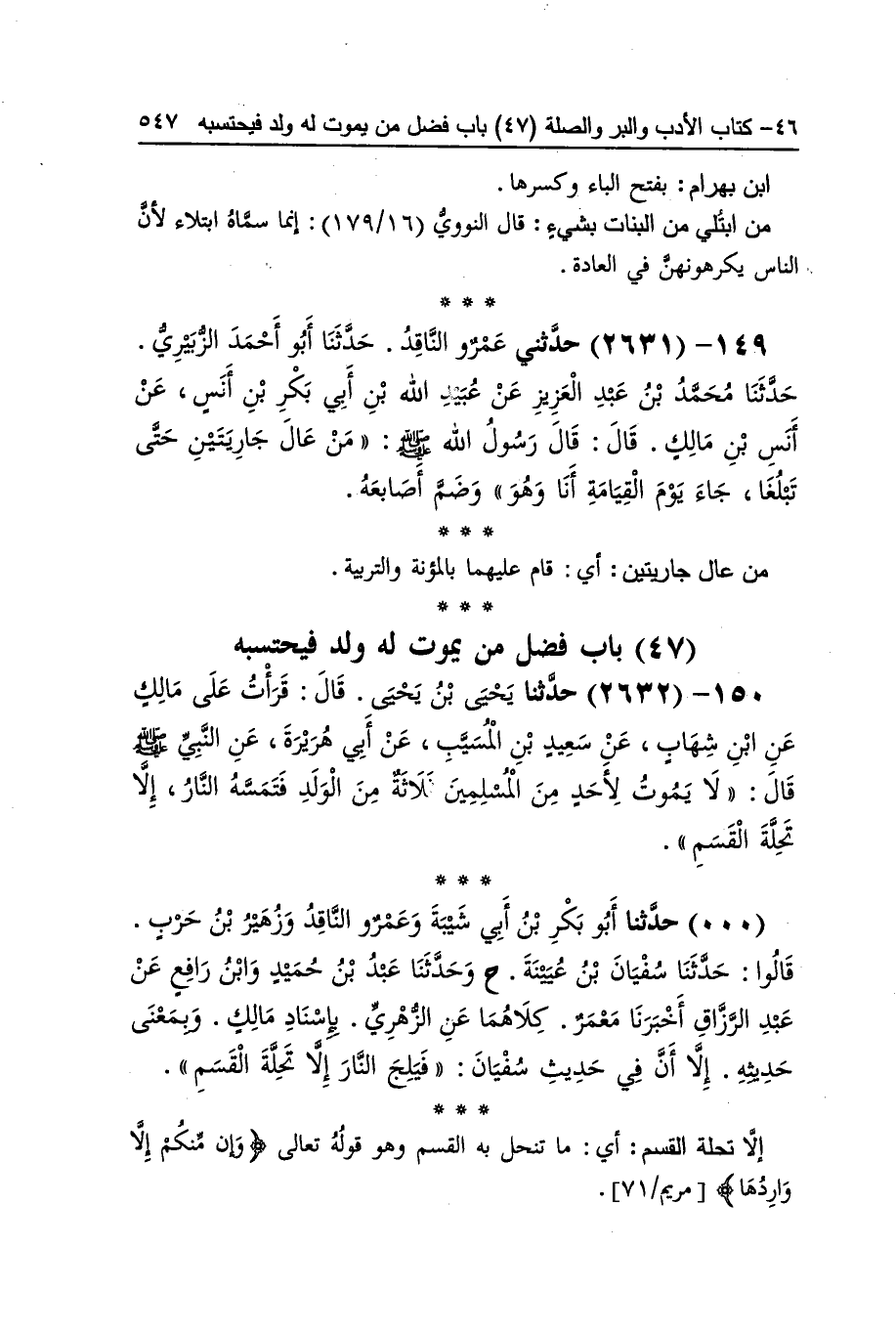 [2629] بن بهْرَام بِفَتْح الْبَاء وَكسرهَا من ابْتُلِيَ من الْبَنَات بِشَيْء قَالَ النَّوَوِيّ إِنَّمَا سَمَّاهُ ابتلاء لِأَن النَّاس يكرهونهن فِي الْعَادة