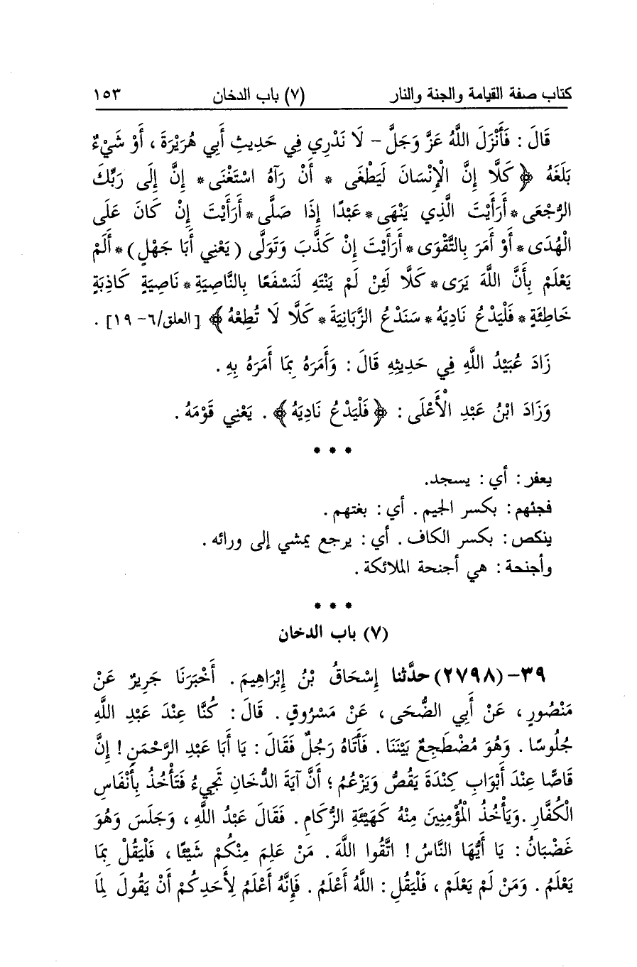 [2797] يعفر أَي يسْجد فَجِئَهُمْ بِكَسْر الْجِيم أَي بغتهم يَنْكص بِكَسْر الْكَاف أَي يرجع يمشي إِلَى وَرَائه وَأَجْنِحَة هِيَ أَجْنِحَة الْمَلَائِكَة
