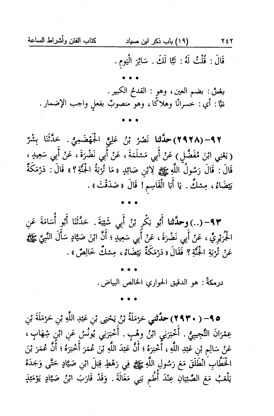 [2927] فلبسني بِالتَّخْفِيفِ أَي جعلني ألتبس فِي أمره وأشك فِيهِ ذمَامَة بِفَتْح الذَّال الْمُعْجَمَة وَتَخْفِيف الْمِيم أَي حَيَاء كَاد أَن يَأْخُذ فِي قَوْله بتَشْديد فِي وَوَقع قَوْله فَاعل يَأْخُذ أَي يُؤثر فِي وأصدقه فِي دَعْوَاهُ بعس بِضَم الْعين وَهُوَ الْقدح الْكَبِير تَبًّا أَي خسرانا وهلاكا وَهُوَ مَنْصُوب بِفعل وَاجِب الْإِضْمَار