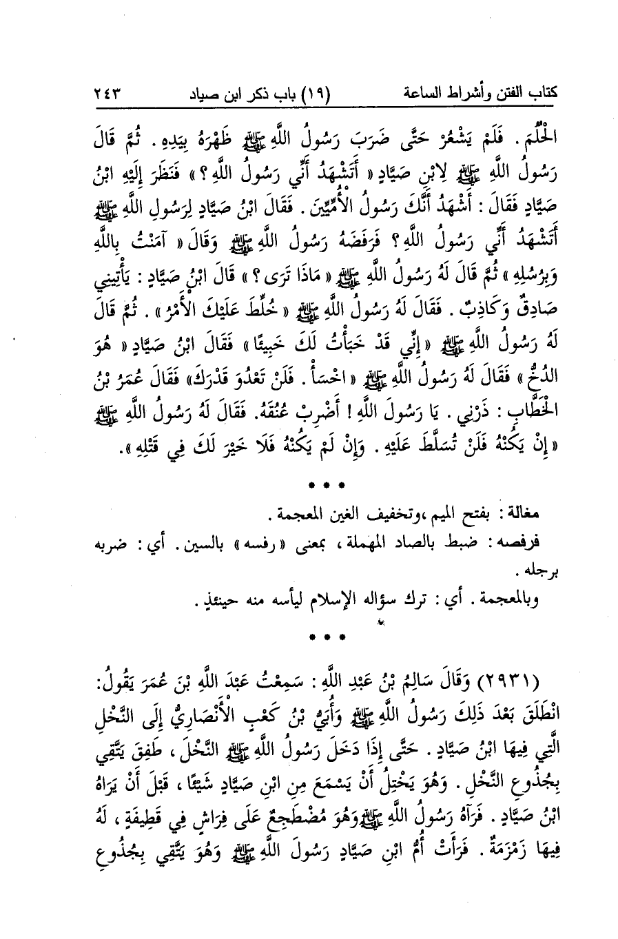 [2930] مغالة بِفَتْح الْمِيم وَتَخْفِيف الْغَيْن الْمُعْجَمَة فرفصه ضبط بالصَّاد الْمُهْملَة بِمَعْنى رفسه بِالسِّين أَي ضربه بِرجلِهِ وبالمعجمة أَي ترك سُؤَاله الْإِسْلَام ليأسه مِنْهُ حِينَئِذٍ