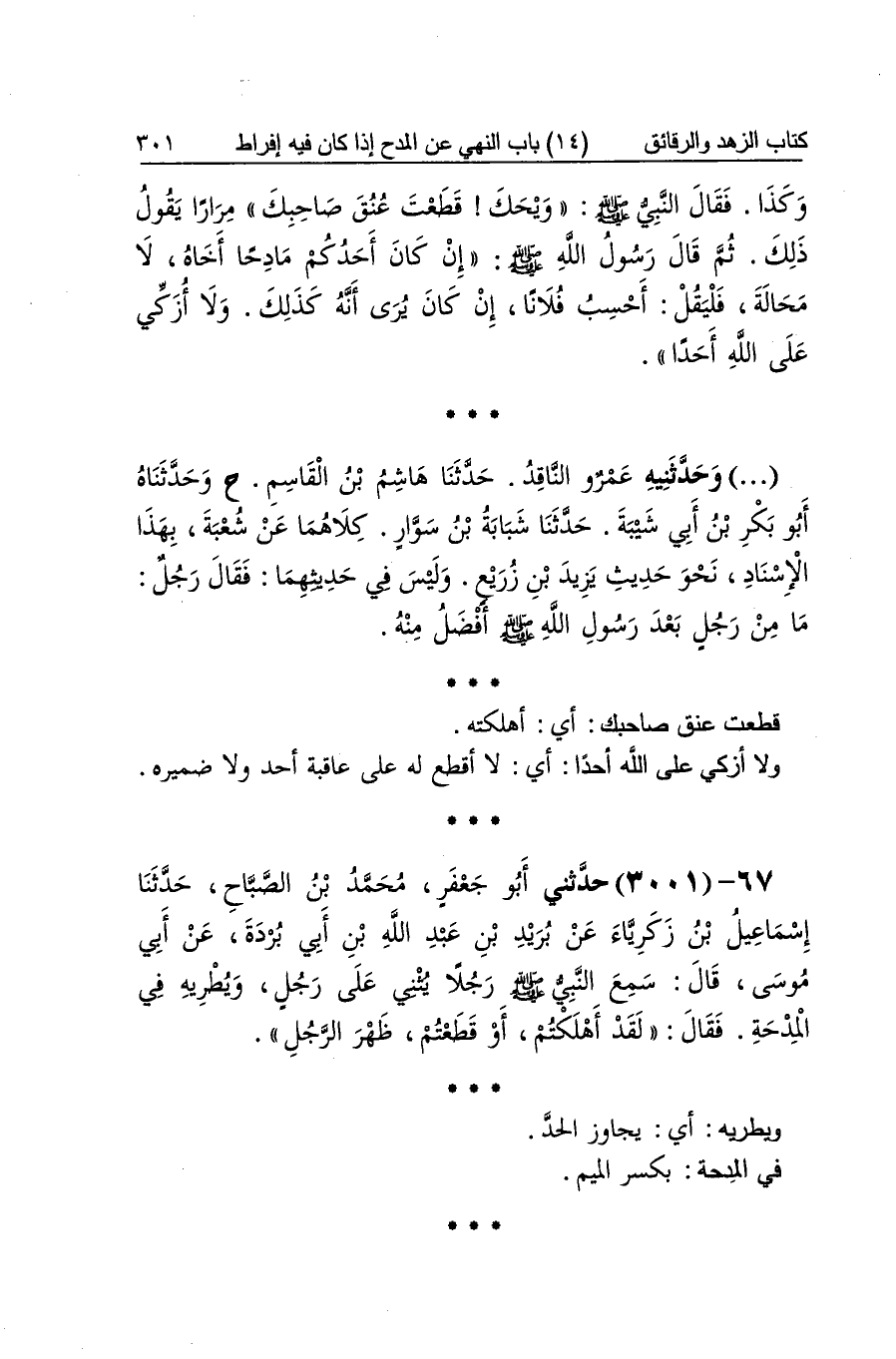 [3000] قطعت عنق صَاحبك أَي أهلكته وَلَا أزكي على الله أحدا أَي لَا أقطع لَهُ على عَاقِبَة أحد وَلَا ضَمِيره