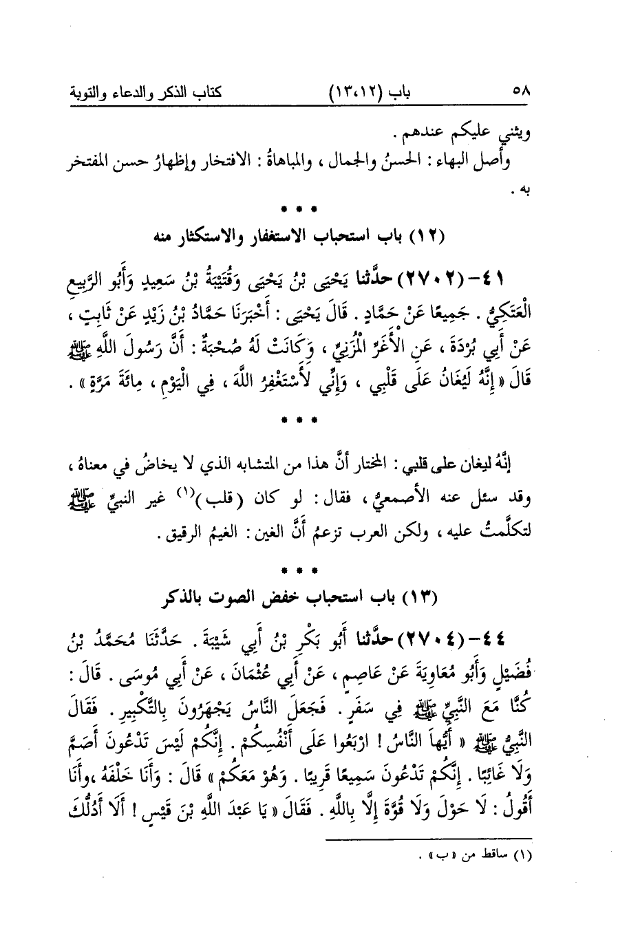 [2702] إِنَّه ليغان على قلبِي الْمُخْتَار أَن هَذَا من الْمُتَشَابه الَّذِي لَا يخاض فِي مَعْنَاهُ وَقد سُئِلَ عَنهُ الْأَصْمَعِي فَقَالَ لَو كَانَ قلب غير النَّبِي صلى الله عَلَيْهِ وَسلم لتكلمت عَلَيْهِ وَلَكِن الْعَرَب تزْعم أَن الْغَيْن الْغَيْم الرَّقِيق