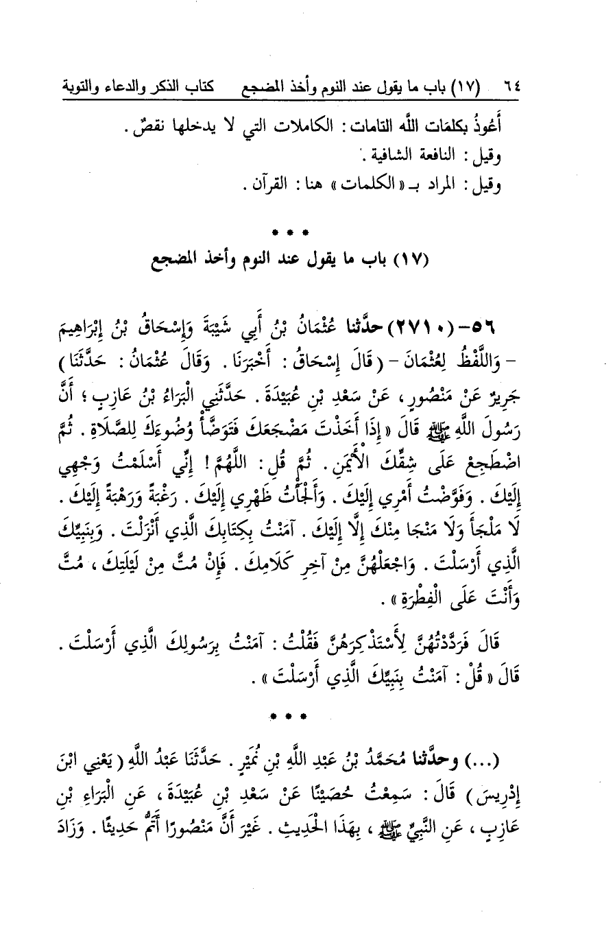 [2708] أعوذ بِكَلِمَات الله التامات الكاملات الَّتِي لَا يدخلهَا نقص وَقيل النافعة الشافية وَقيل المُرَاد بالكلمات هُنَا الْقُرْآن