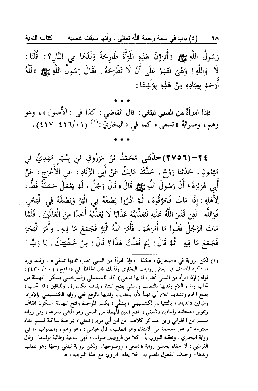 [2754] فَإِذا امْرَأَة من السَّبي تبتغي قَالَ القَاضِي كَذَا فِي الْأُصُول وَهُوَ وهم وَصَوَابه تسْعَى كَمَا فِي البُخَارِيّ
