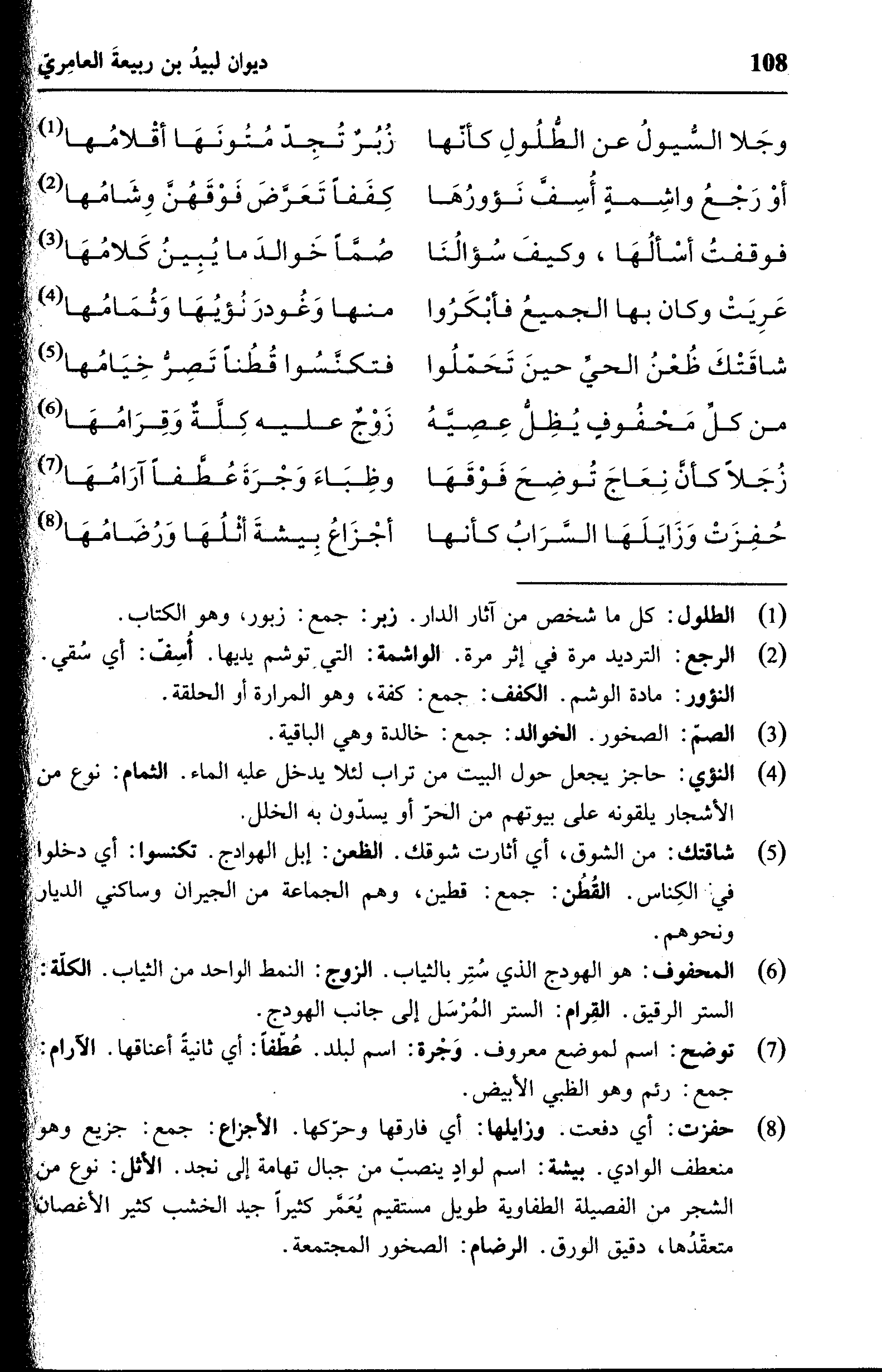 (¬2) الرجع: الترديد مرة في إثر المرة. الواشمة: التي توشم يديها. أُسِفّ: أي سُقي. النؤور: مادة الوشم. الكفف: جمع: كفة، وهو المرارة أو الحلقة.