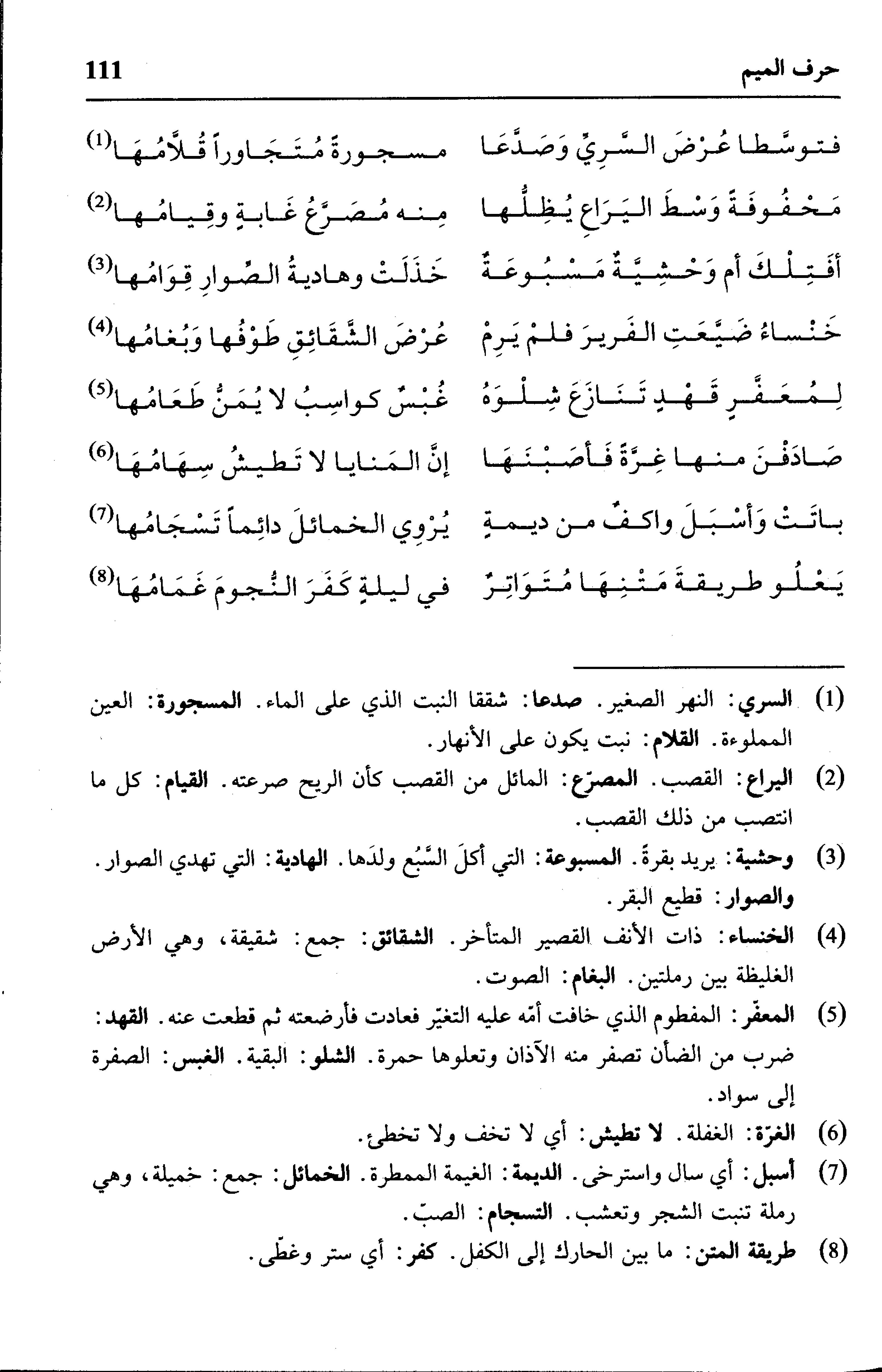 (¬2) اليراع: القصب. المصرّع: المائل من القصب كأن الريح صرعته. القيام: كل ما انتصب من ذلك القصب.