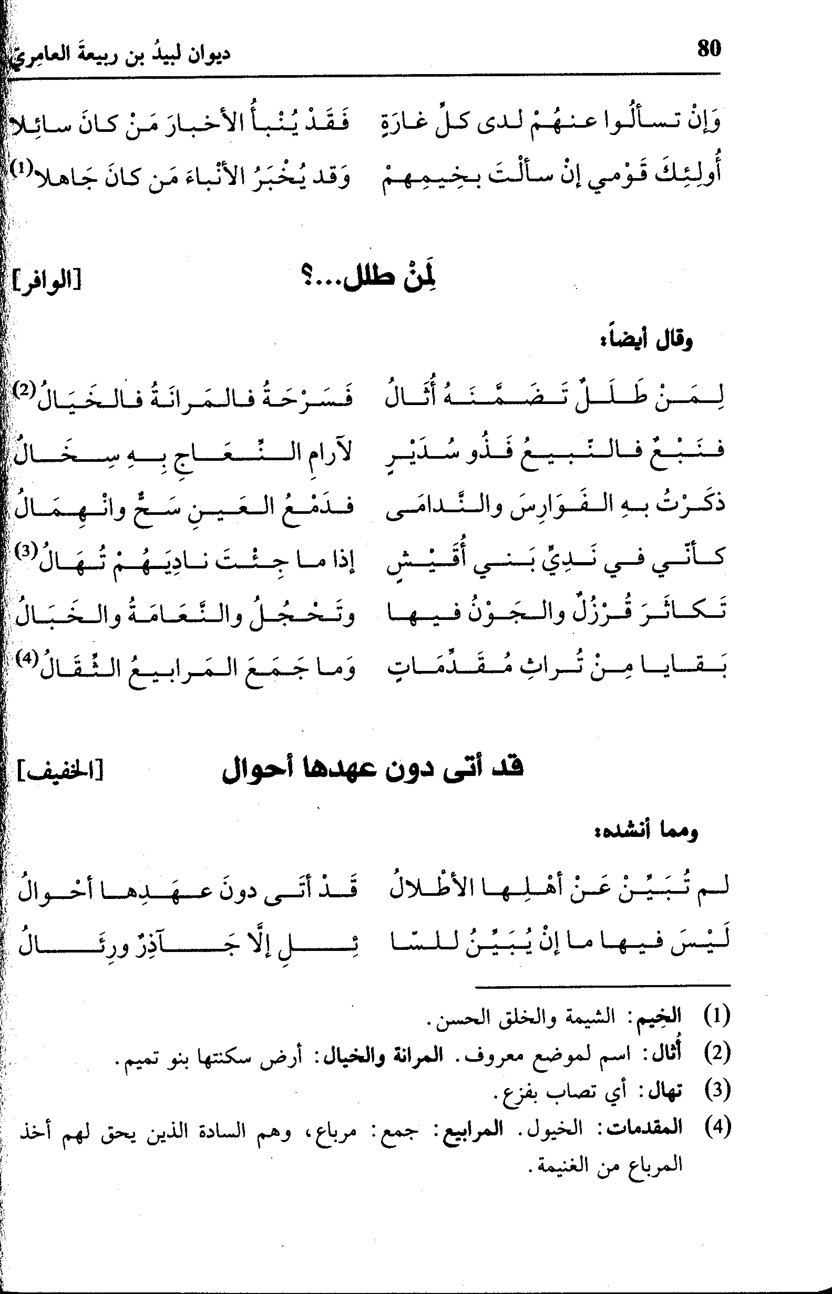 لم تُبَيِّنْ عَنْ أهْلِها الأطْلالُ ... قَدْ أتَى دونَ عَهدِها أحْوالُ