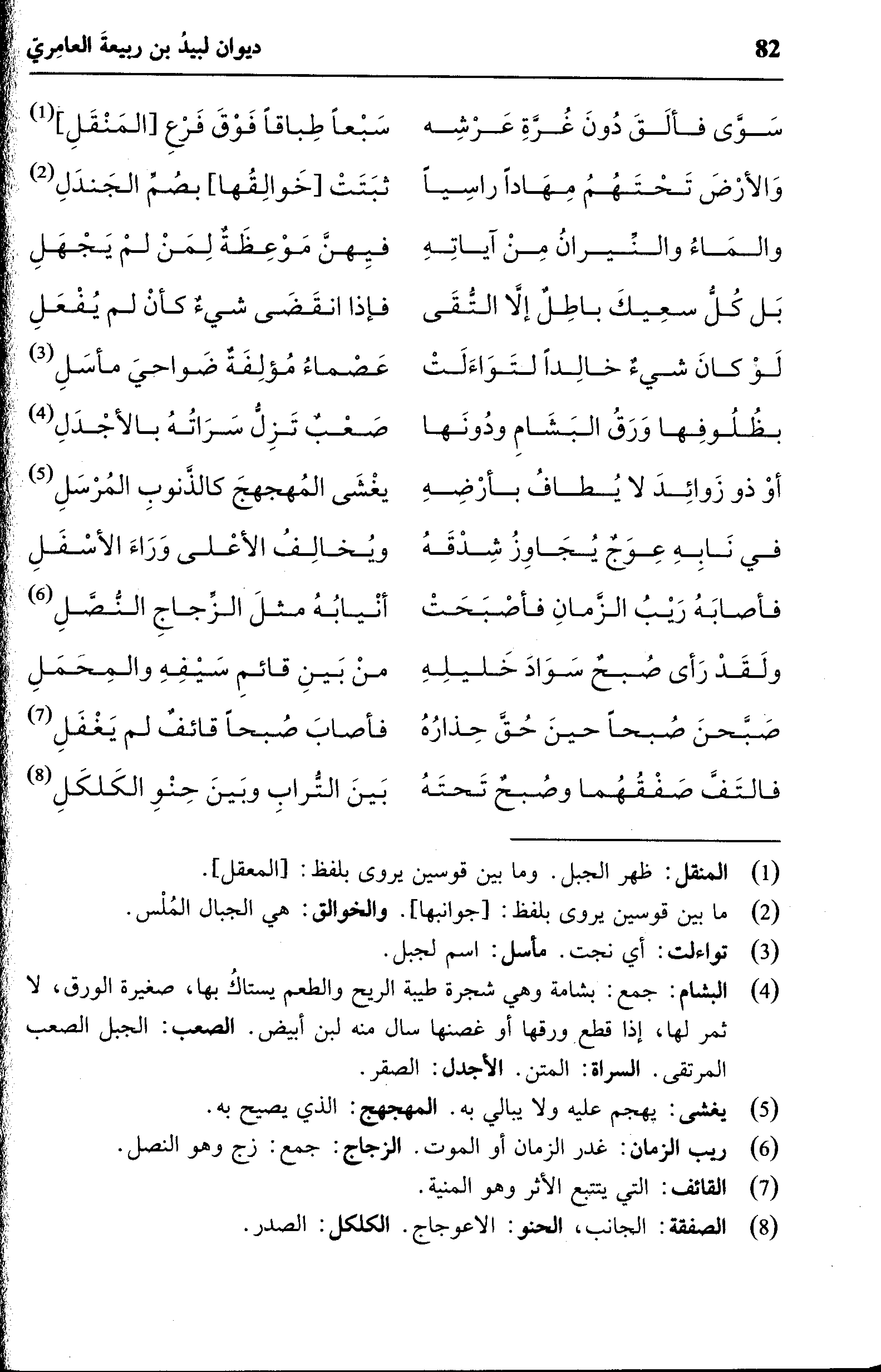 سَوَّى فألْقَ دُونَ غُرَّة ِ عَرْشِه ... سَبْعاً طِباقاً فَوْقَ فَرْعِ [المَنْقَلِ] (¬1)
