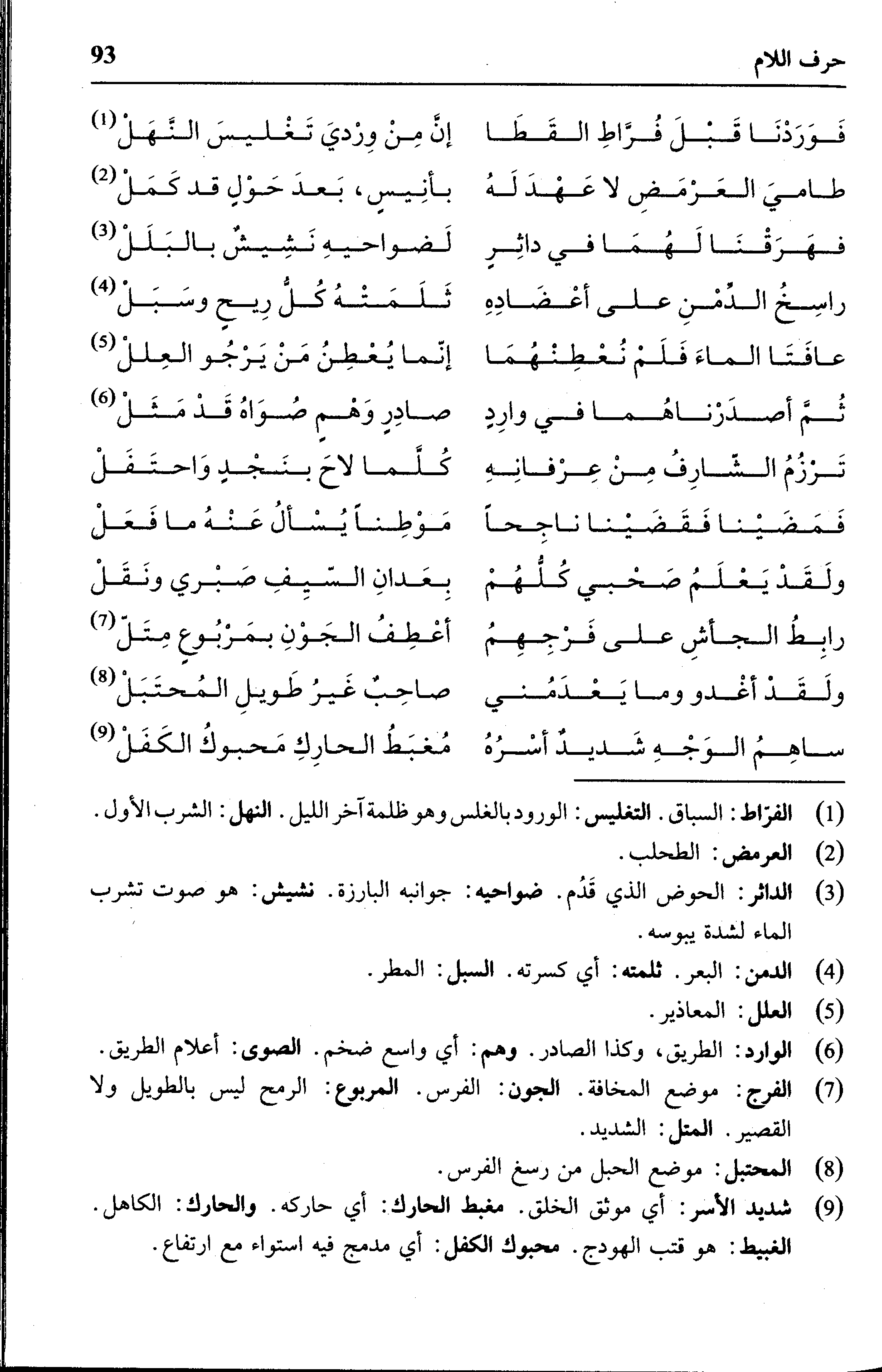 (¬4) الدمن: البعر. ثلمته: أي كسرته. السبل: المطر.