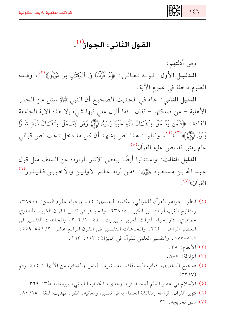 (¬١) انظر: جواهر القرآن للغزالي، مكتبة الجندي: ١٢، وإحياء علوم الدين: ١/ ٣٦٩، ومفاتيح الغيب أو التفسير الكبير: ٤/ ٢٣٨، والجواهر في تفسير القرآن الكريم لطنطاوي جوهري، دار إحياء التراث العربي، بيروت، ط ٤: ١/ ٢ - ٣، واتجاهات التفسير في العصر الراهن: ٢٦٤، واتجاهات التفسير في القرن الرابع عشر: ٢/ ٥٥١ - ٥٥٩، ٥٦٥ - ٥٧٧، والتفسير العلمي للقرآن في الميزان: ١٠٣، ١٦٣.