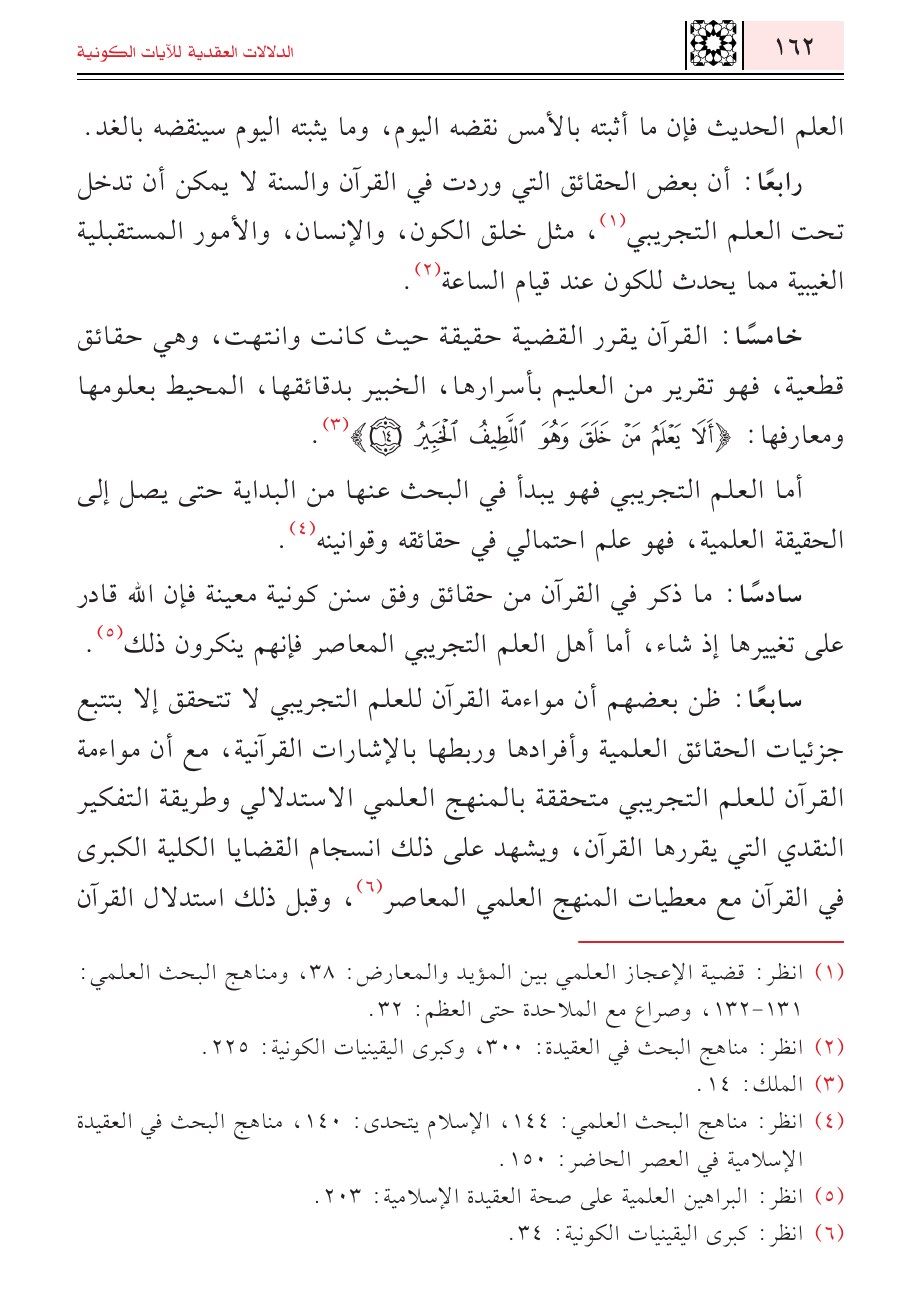(¬٢) انظر: مناهج البحث في العقيدة: ٣٠٠، وكبرى اليقينيات الكونية: ٢٢٥.