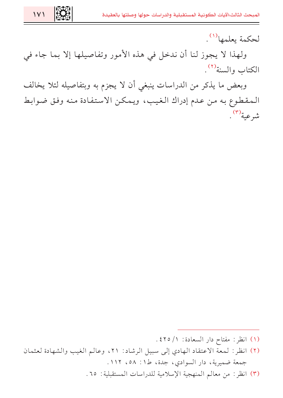 (¬٣) انظر: من معالم المنهجية الإسلامية للدراسات المستقبلية: ٦٥.