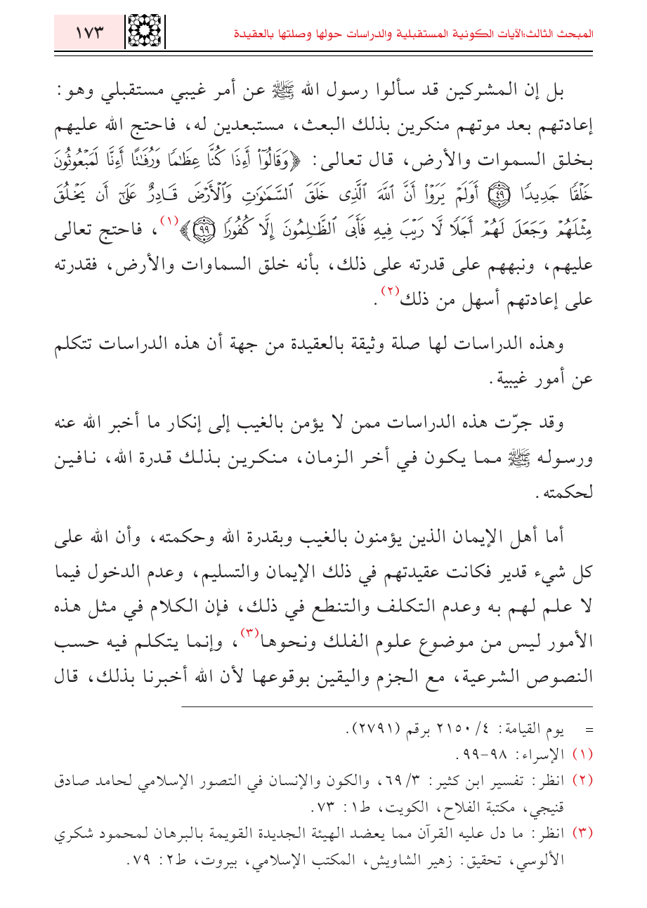 (¬٣) انظر: ما دل عليه القرآن مما يعضد الهيئة الجديدة القويمة بالبرهان لمحمود شكري الألوسي، تحقيق: زهير الشاويش، المكتب الإسلامي، بيروت، ط ٢: ٧٩.