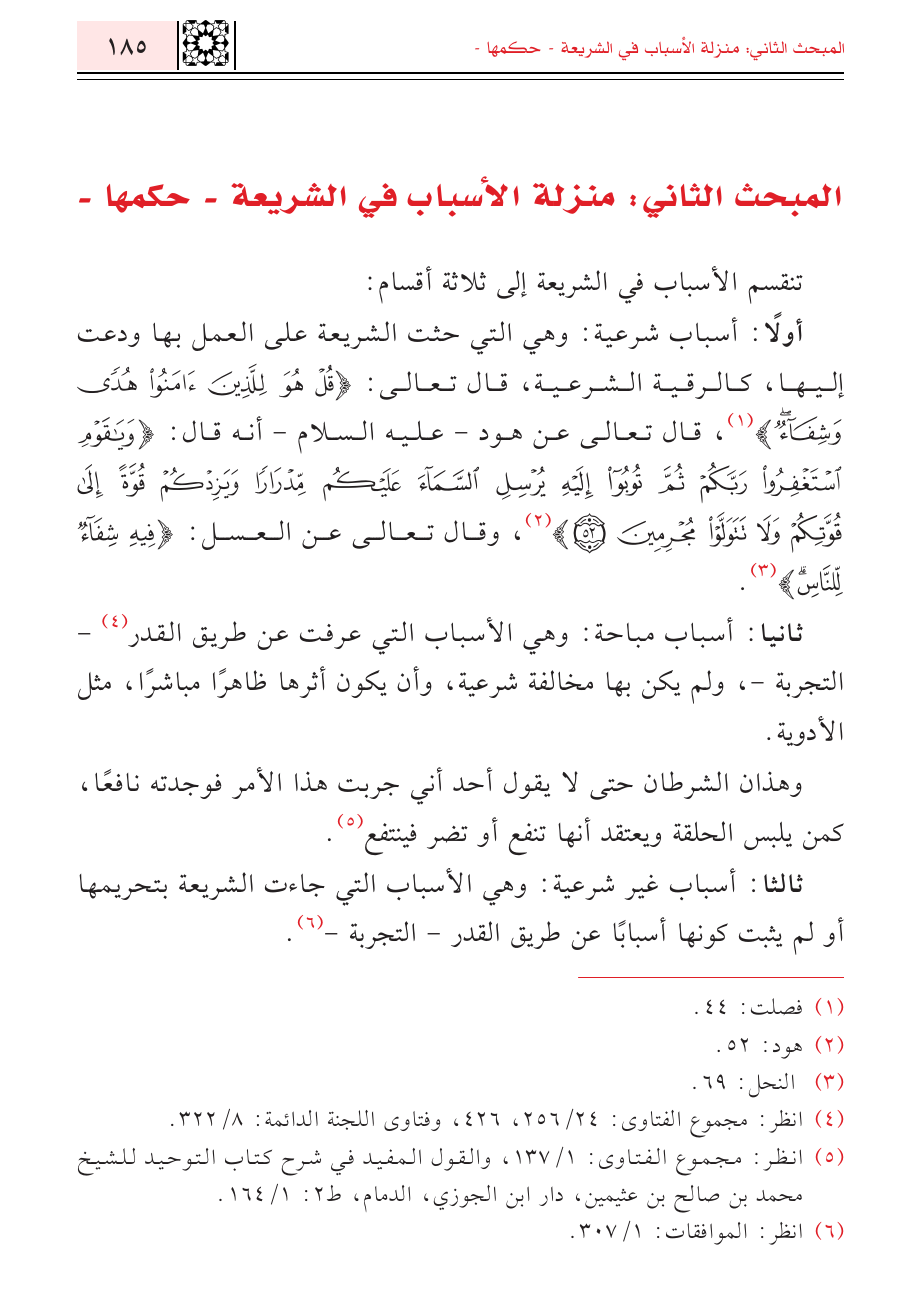 المبحث الثاني: منزلة الأسباب في الشريعة - حكمها-