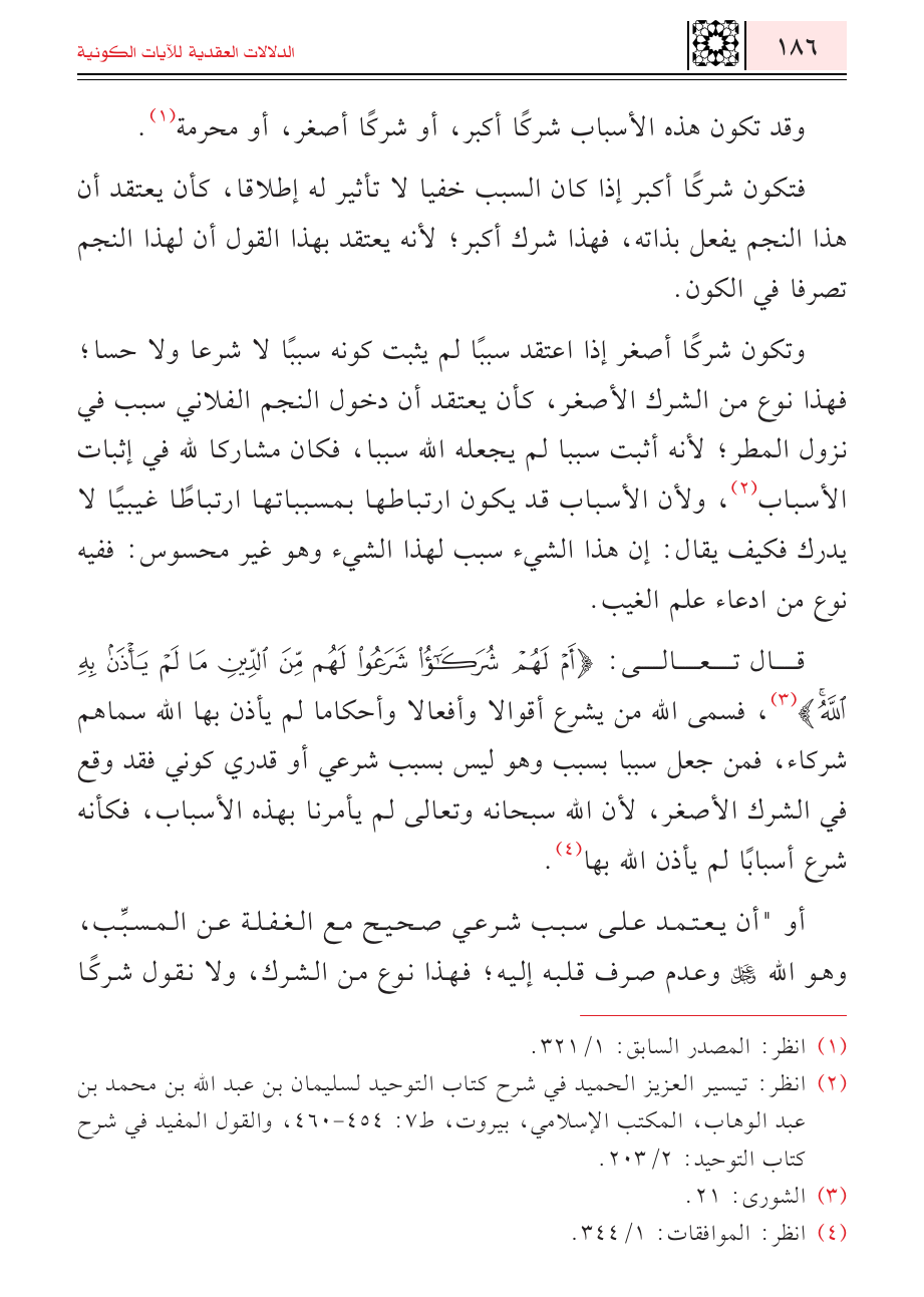 (¬٢) انظر: تيسير العزيز الحميد في شرح كتاب التوحيد لسليمان بن عبد الله بن محمد بن عبد الوهاب، المكتب الإسلامي، بيروت، ط ٧: ٤٥٤ - ٤٦٠، والقول المفيد في شرح كتاب التوحيد: ٢/ ٢٠٣.