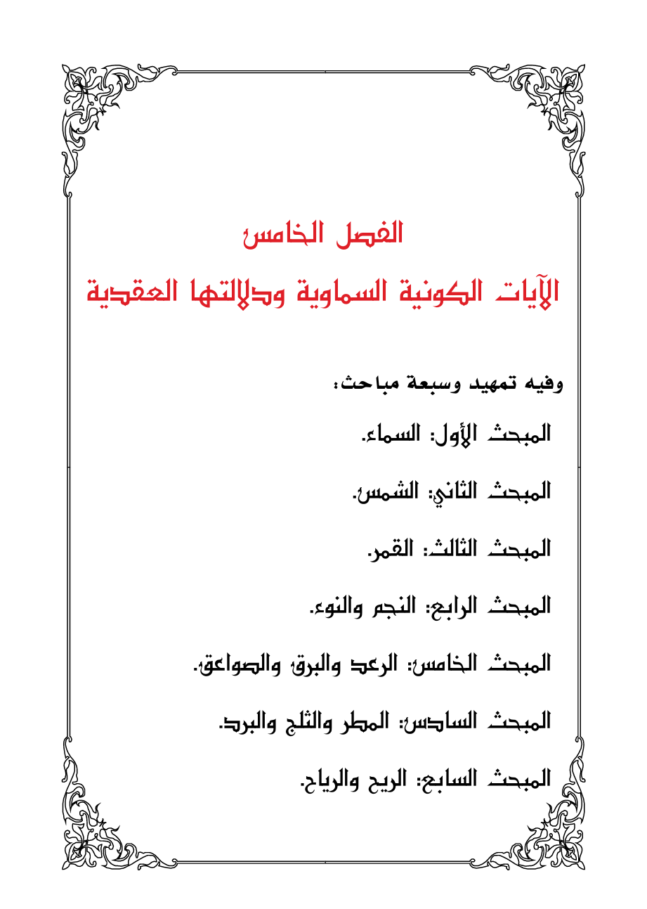 الفصل الخامس الآيات الكونية السماوية ودلالتها العقدية