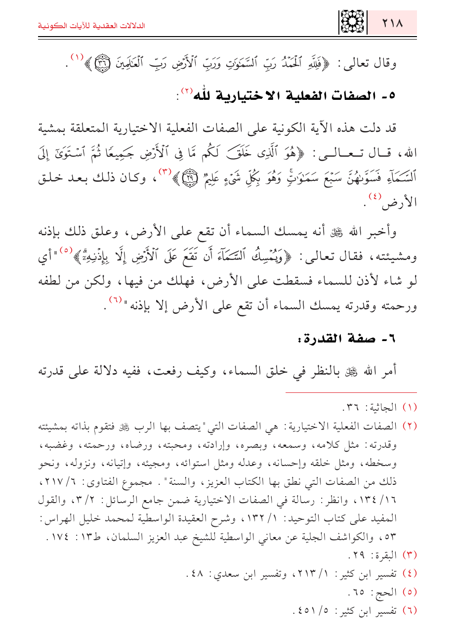 ٥ - الصفات الفعلية الاختيارية لله (¬٢):