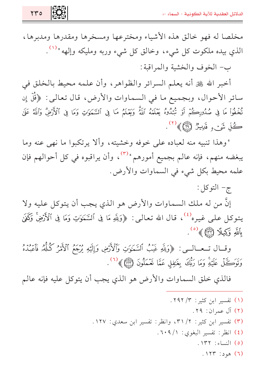 وقال تعالى: {وَلِلَّهِ غَيْبُ السَّمَاوَاتِ وَالْأَرْضِ وَإِلَيْهِ يُرْجَعُ الْأَمْرُ كُلُّهُ فَاعْبُدْهُ وَتَوَكَّلْ عَلَيْهِ وَمَا رَبُّكَ بِغَافِلٍ عَمَّا تَعْمَلُونَ} (¬٦).