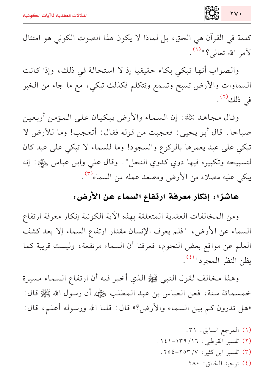 كلمة في القرآن هي الحق، بل لماذا لا يكون هذا الصوت الكوني هو امتثال لأمر الله تعالى؟ " (¬١).