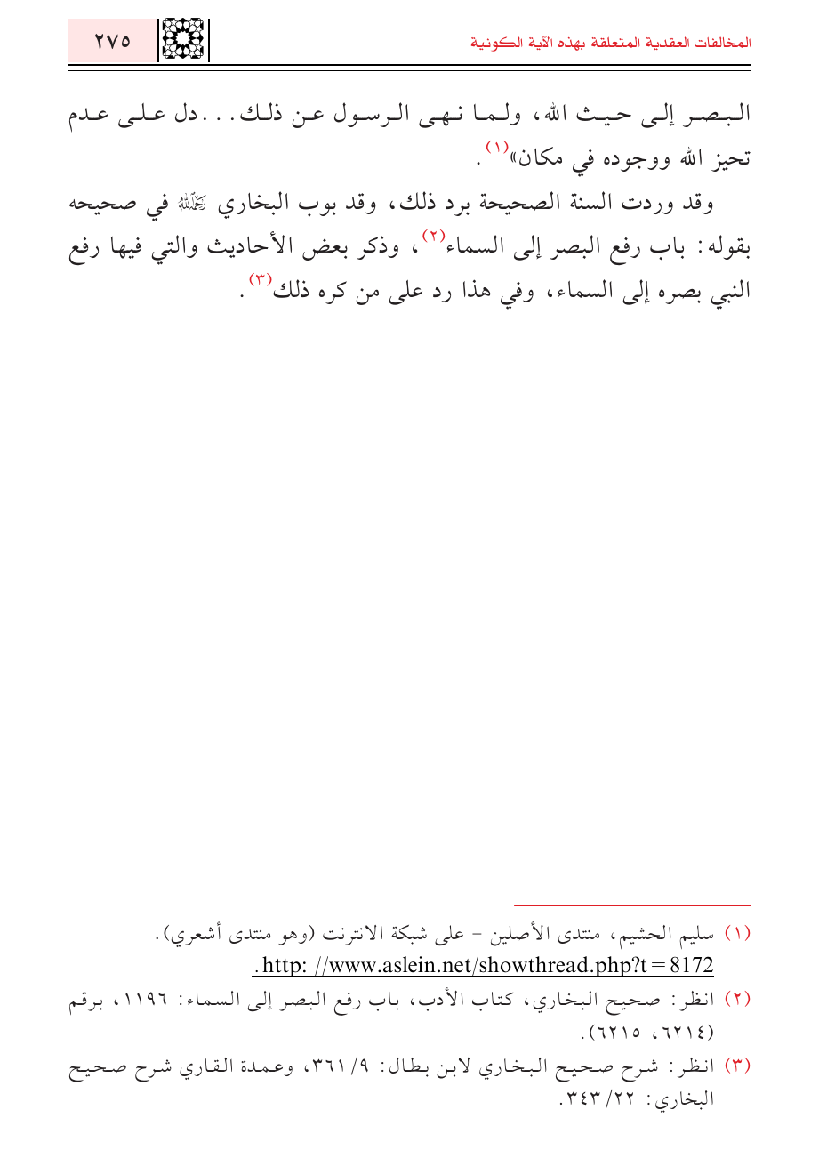 (¬١) سليم الحشيم، منتدى الأصلين - على شبكة الانترنت (وهو منتدى أشعري).