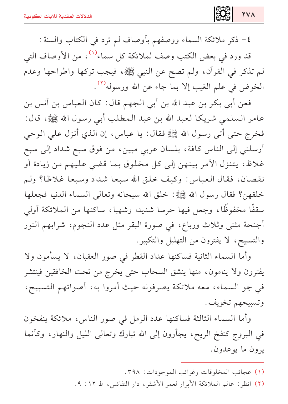 (¬٢) انظر: عالم الملائكة الأبرار لعمر الأشقر، دار النفائس، ط ١٢: ٩.