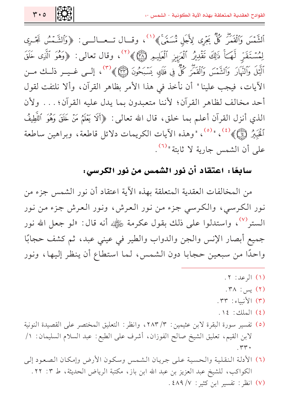 سابعاً: اعتقاد أن نور الشمس من نور الكرسي: