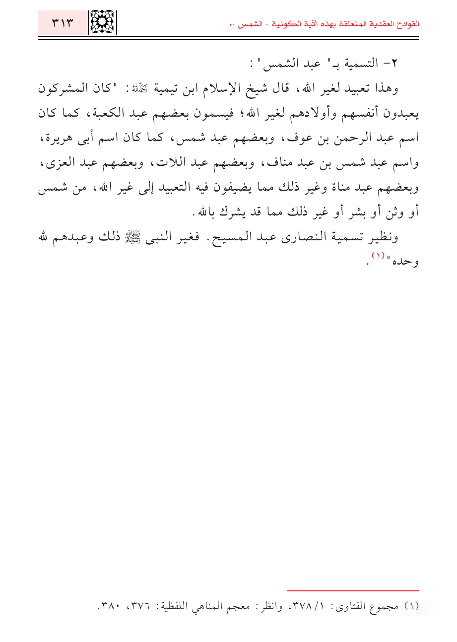 ٢ - التسمية بـ" عبد الشمس":