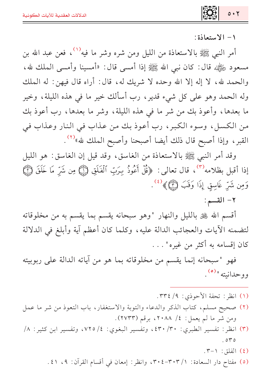 (¬٢) صحيح مسلم، كتاب الذكر والدعاء والتوبة والاستغفار، باب التعوذ من شر ما عمل ومن شر ما لم يعمل: ٤/ ٢٠٨٨، برقم (٢٧٣٣).