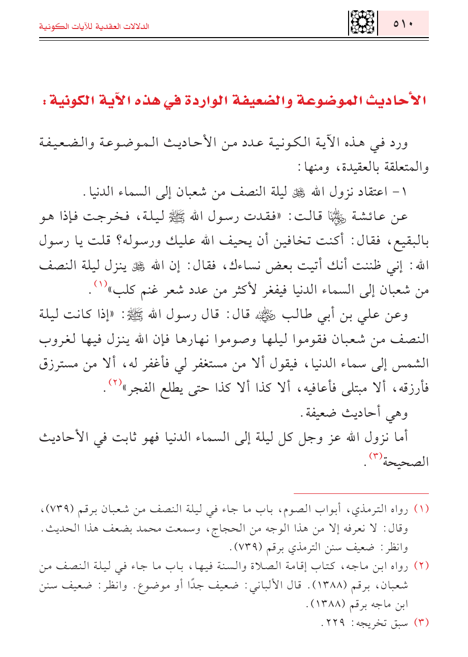 الأحاديث الموضوعة والضعيفة الواردة في هذه الآية الكونية: