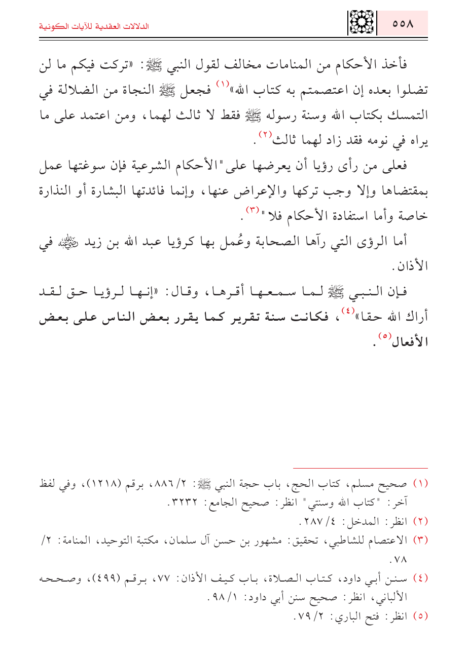 فإن النبي - صلى الله عليه وسلم - لما سمعها أقرها، وقال: " إنها لرؤيا حق لقد أراك الله حقا" (¬٤)، فكانت سنة تقرير كما يقرر بعض الناس على بعض الأفعال (¬٥).