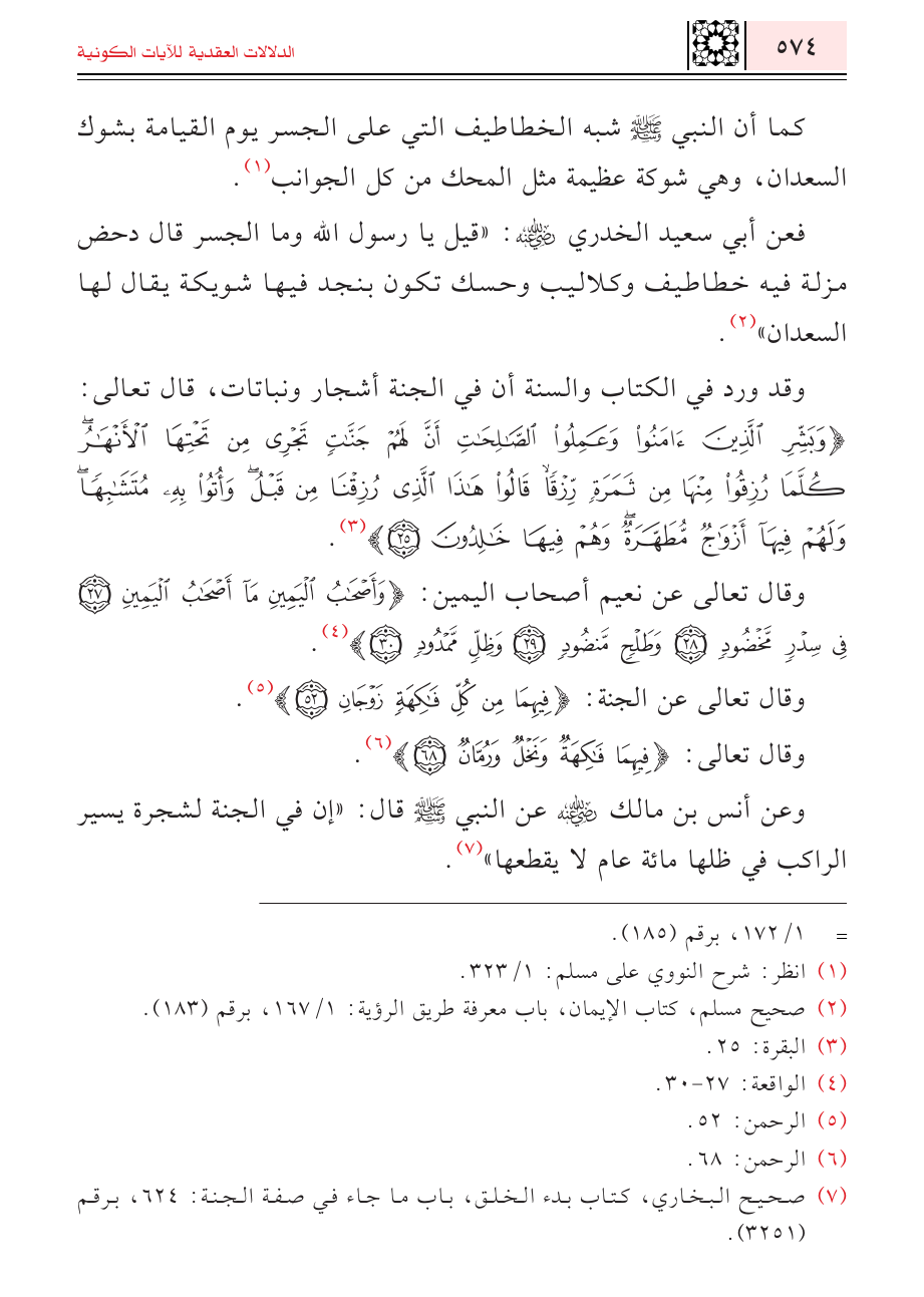 (¬٧) صحيح البخاري، كتاب بدء الخلق، باب ما جاء في صفة الجنة: ٦٢٤، برقم (٣٢٥١).
