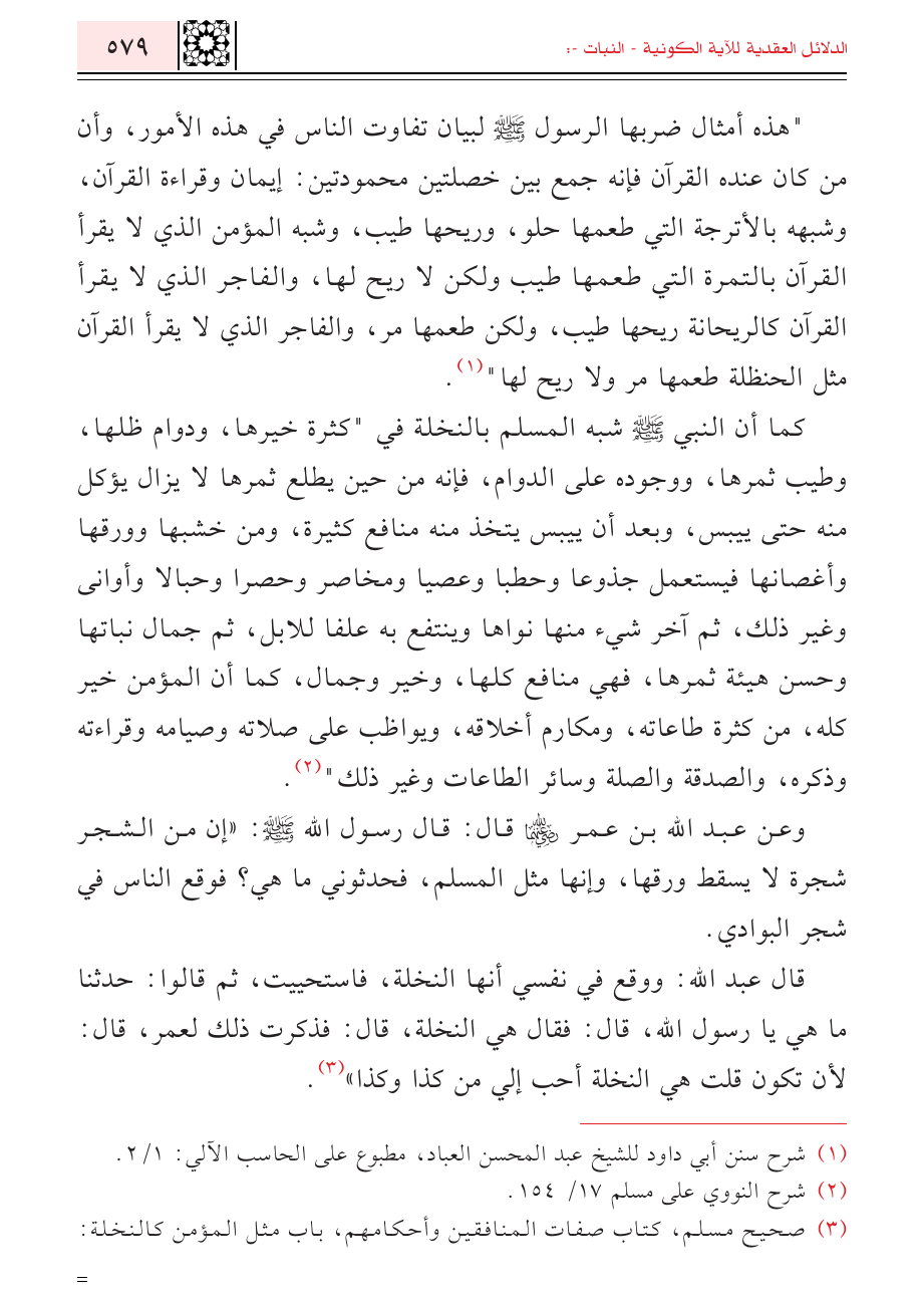 (¬٣) صحيح مسلم، كتاب صفات المنافقين وأحكامهم، باب مثل المؤمن كالنخلة: ٤/ ٢١٦٤، برقم (٢٨١١).