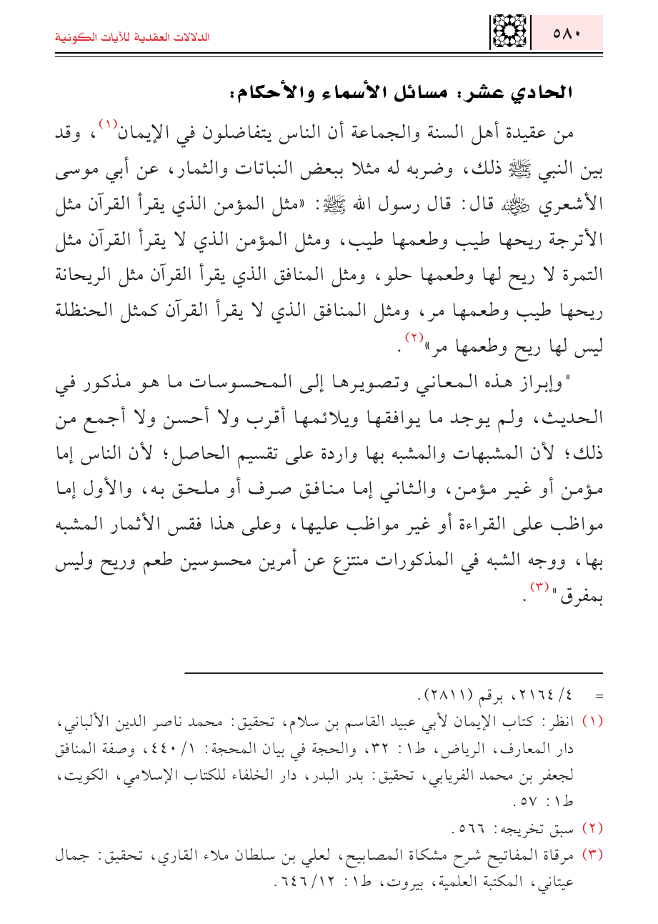 (¬٣) مرقاة المفاتيح شرح مشكاة المصابيح، لعلي بن سلطان ملاء القاري، تحقيق: جمال عيتاني، المكتبة العلمية، بيروت، ط ١: ١٢/ ٦٤٦.
