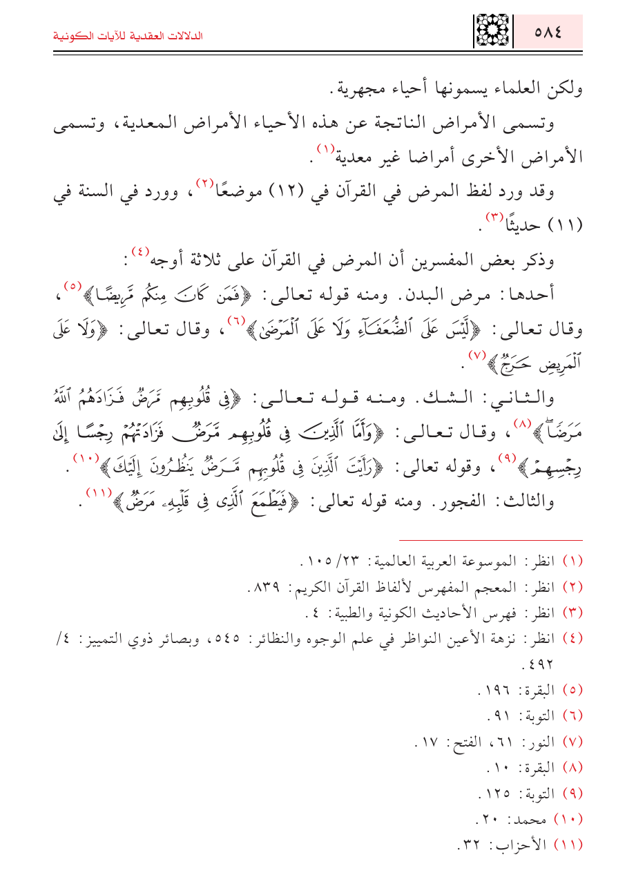 وذكر بعض المفسرين أن المرض في القرآن على ثلاثة أوجه (¬٤):