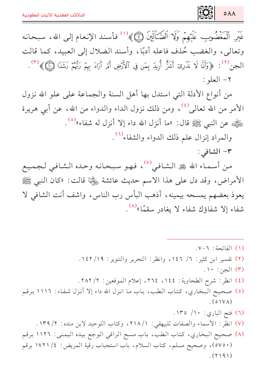 (¬٨) صحيح البخاري، كتاب الطب، باب مسح الراقي الوجع بيده اليمنى: ١١٢٦ برقم (٥٧٥٠)، وصحيح مسلم، كتاب السلام، باب استحباب رقية المريض: ٤/ ١٧٢١ برقم (٢١٩١).
