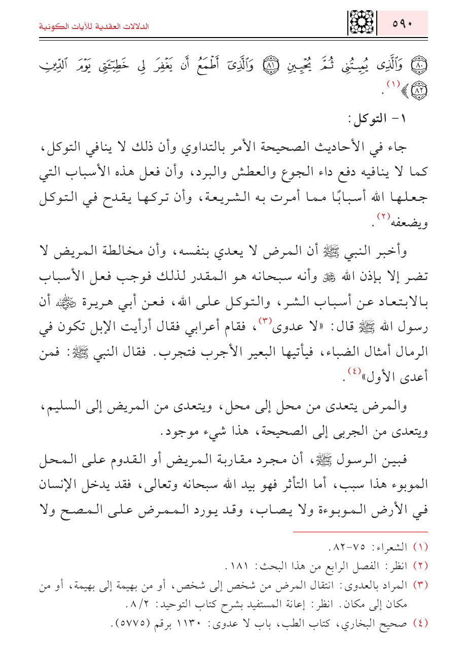 (¬٤) صحيح البخاري، كتاب الطب، باب لا عدوى: ١١٣٠ برقم (٥٧٧٥).