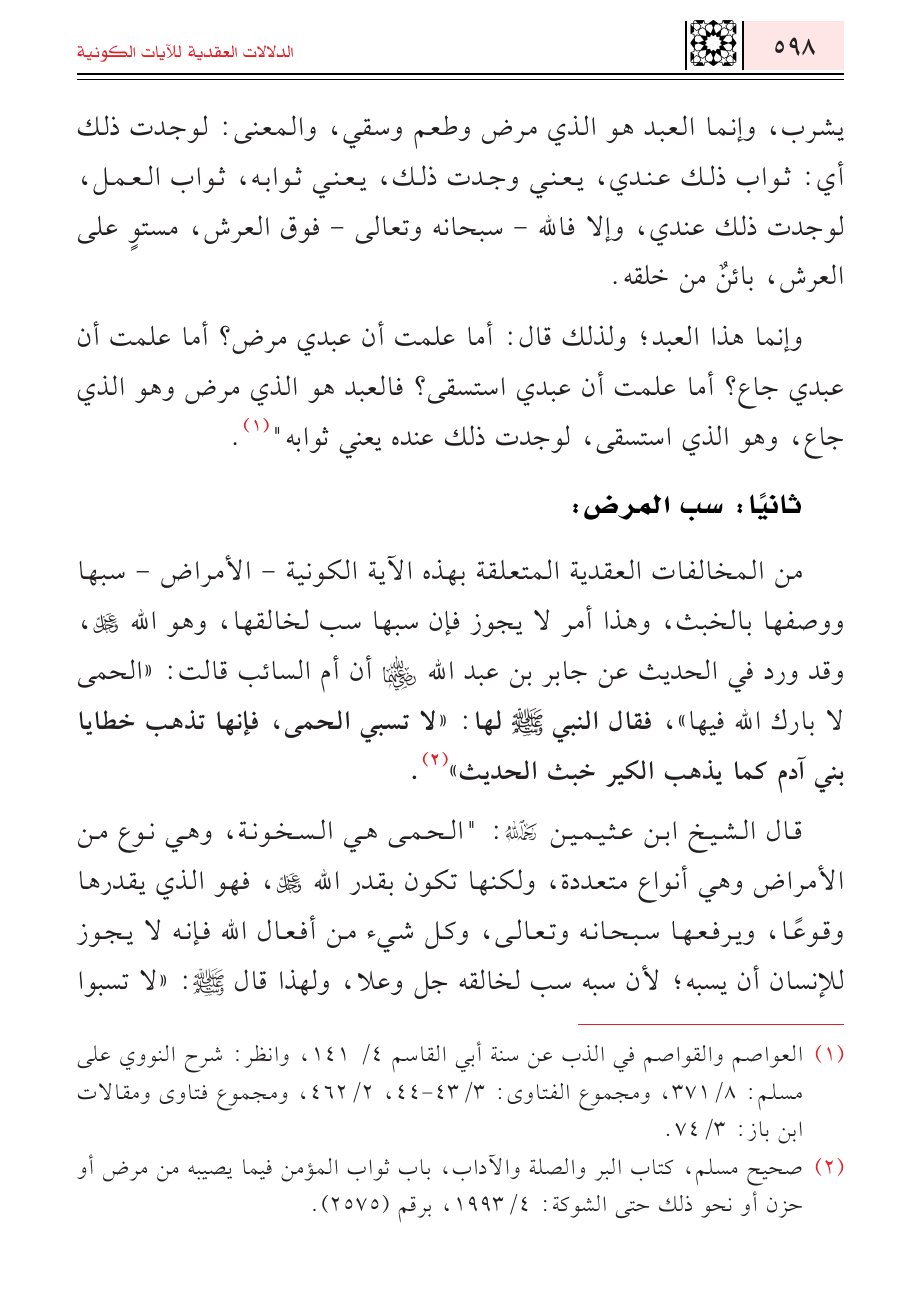 (¬١) العواصم والقواصم في الذب عن سنة أبي القاسم ٤/ ١٤١، وانظر: شرح النووي على مسلم: ٨/ ٣٧١، ومجموع الفتاوى: ٣/ ٤٣ - ٤٤، ٢/ ٤٦٢، ومجموع فتاوى ومقالات ابن باز: ٣/ ٧٤.