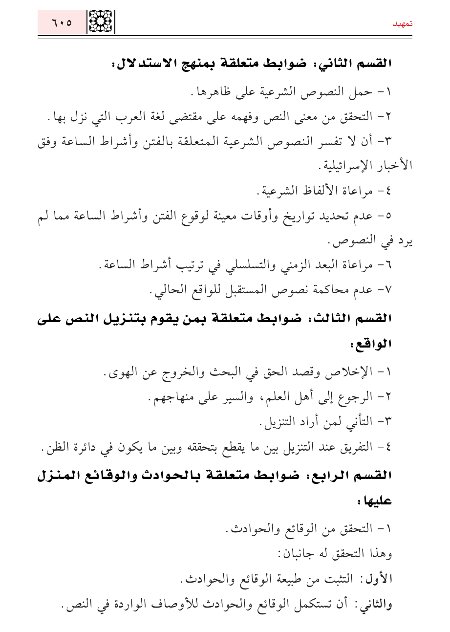 القسم الرابع: ضوابط متعلقة بالحوادث والوقائع المنزل عليها: