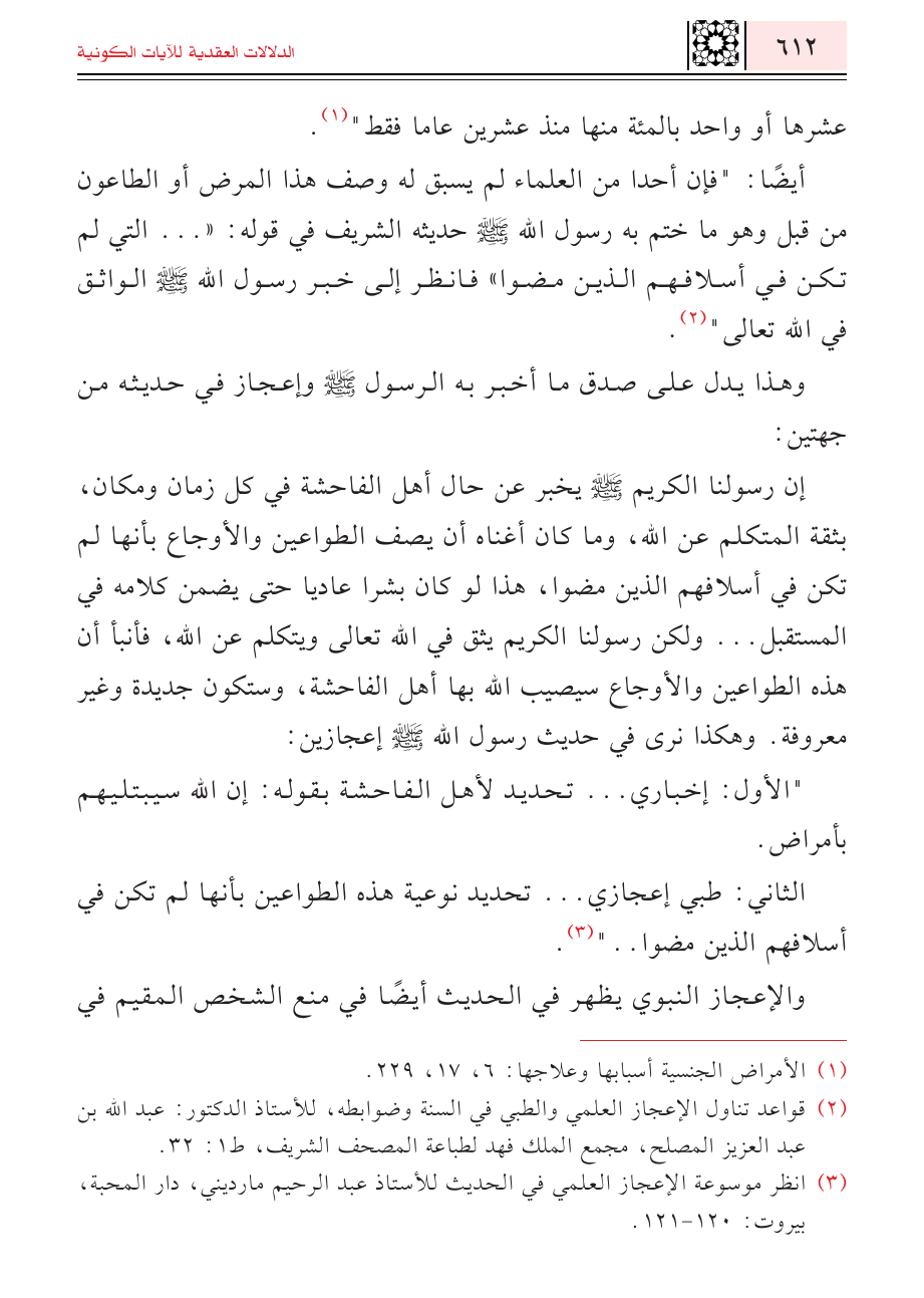 (¬٢) قواعد تناول الإعجاز العلمي والطبي في السنة وضوابطه، للأستاذ الدكتور: عبدالله بن عبدالعزيز المصلح، مجمع الملك فهد لطباعة المصحف الشريف، ط ١: ٣٢.