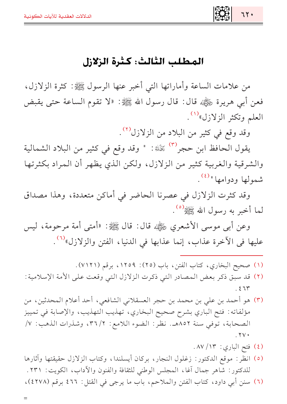 (¬٢) قد سبق ذكر بعض المصادر التي ذكرت الزلازل التي وقعت على الأمة الإسلامية: ٤٢٢.