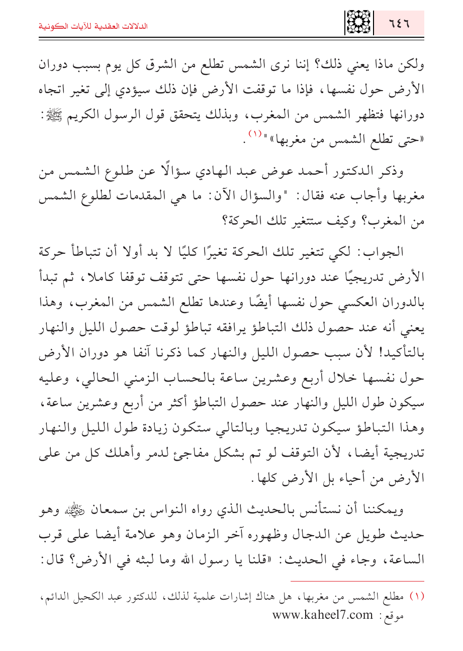 (¬١) مطلع الشمس من مغربها، هل هناك إشارات علمية لذلك، للدكتور عبدالكحيل الدائم، موقع: www.kaheel ٧.com